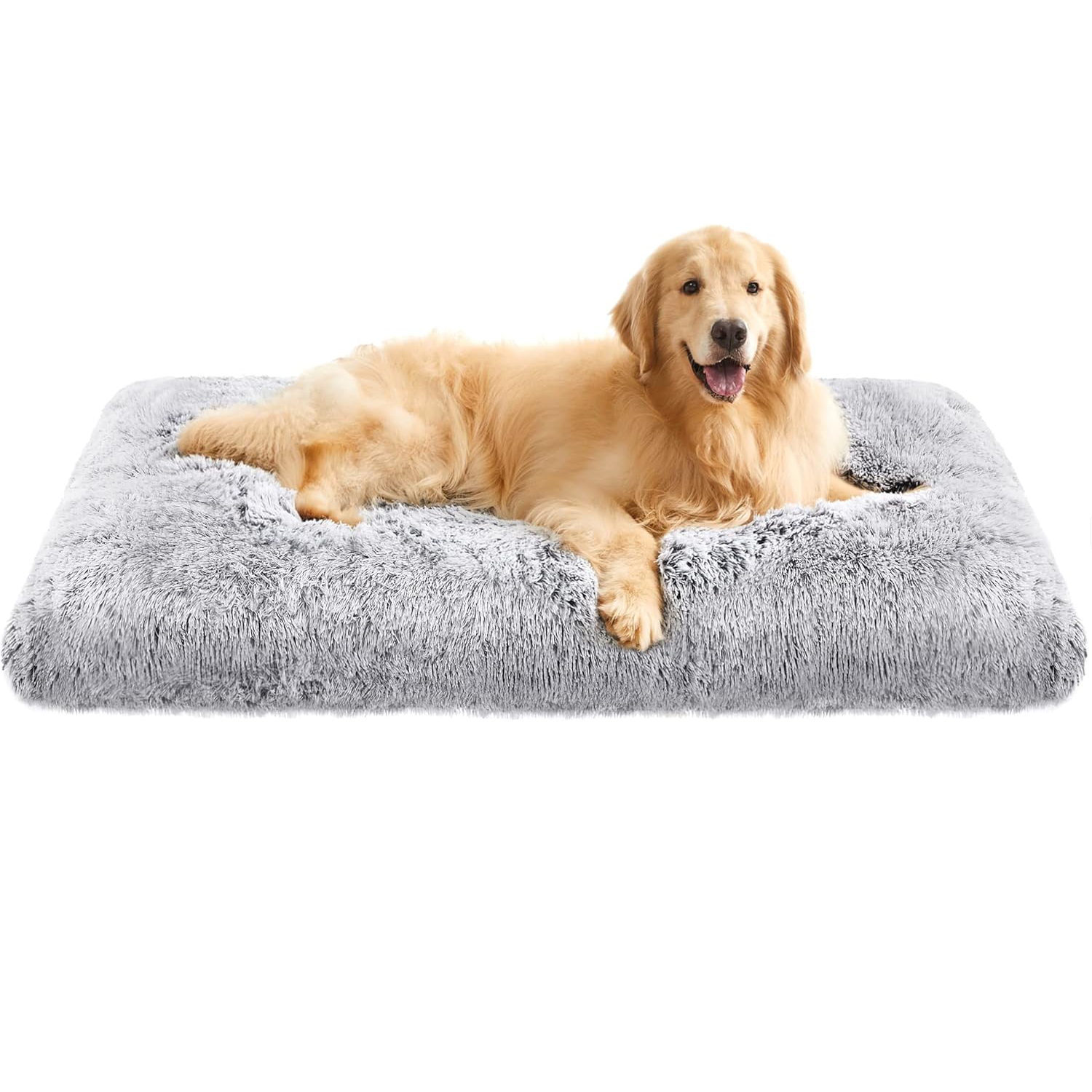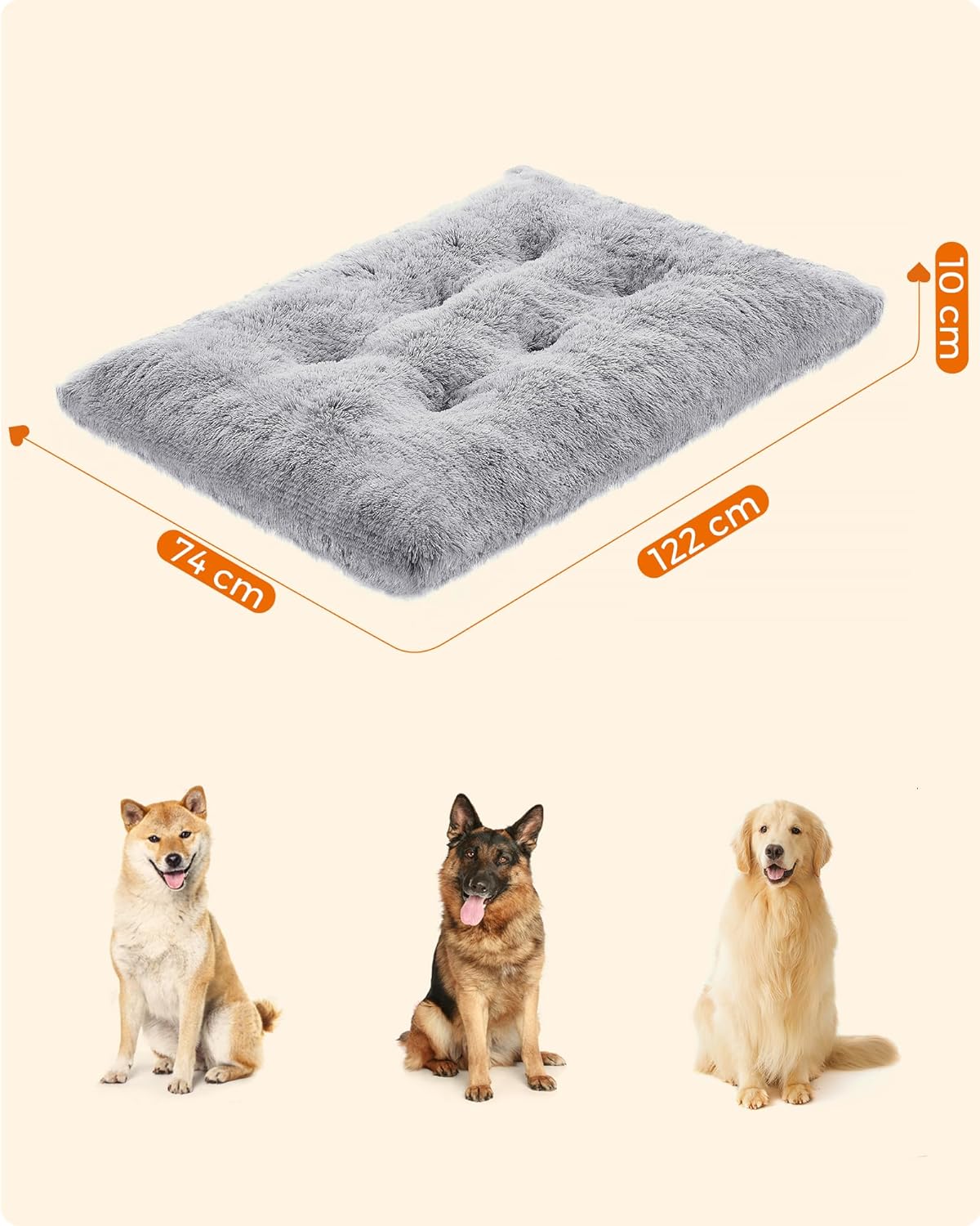 FEANDREA Pat pufos pentru caini de dimensiune mare, captuseala moale cu fir lung, lavabil la masina, 122x74 cm, gri deschis Household NewTrend