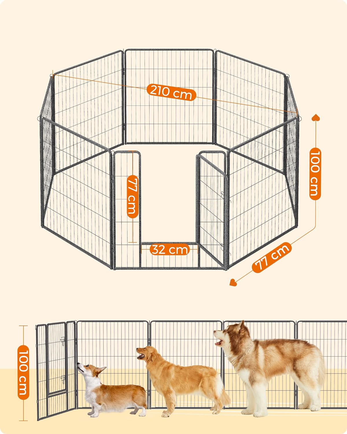 Ofera-i animalului tau un spatiu sigur si confortabil cu acest tarc metalic pentru caini FEANDREA, potrivit pentru caini de talie mare si foarte mare. Construit din metal rezistent, tarcul este ideal pentru dresaj, joaca, odihna sau perioade de recuperare. Designul modular iti permite sa il configurezi usor in forma patrata sau dreptunghiulara, iar usa de acces face interactiunea cu animalul mult mai simpla.