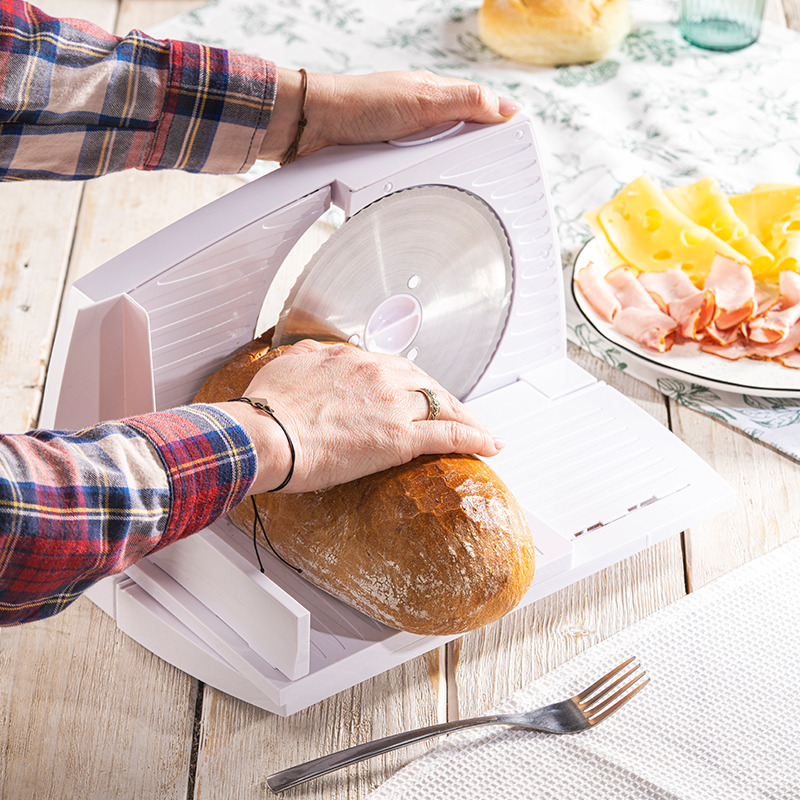 Plasticul rezistent din care este fabricat il face usor de transportat. Lama din inox de inalta calitate va permite sa taiati carnea in felii subtiri sau sa taiati o felie de paine. Grosimea felierii poate fi usor ajustata.