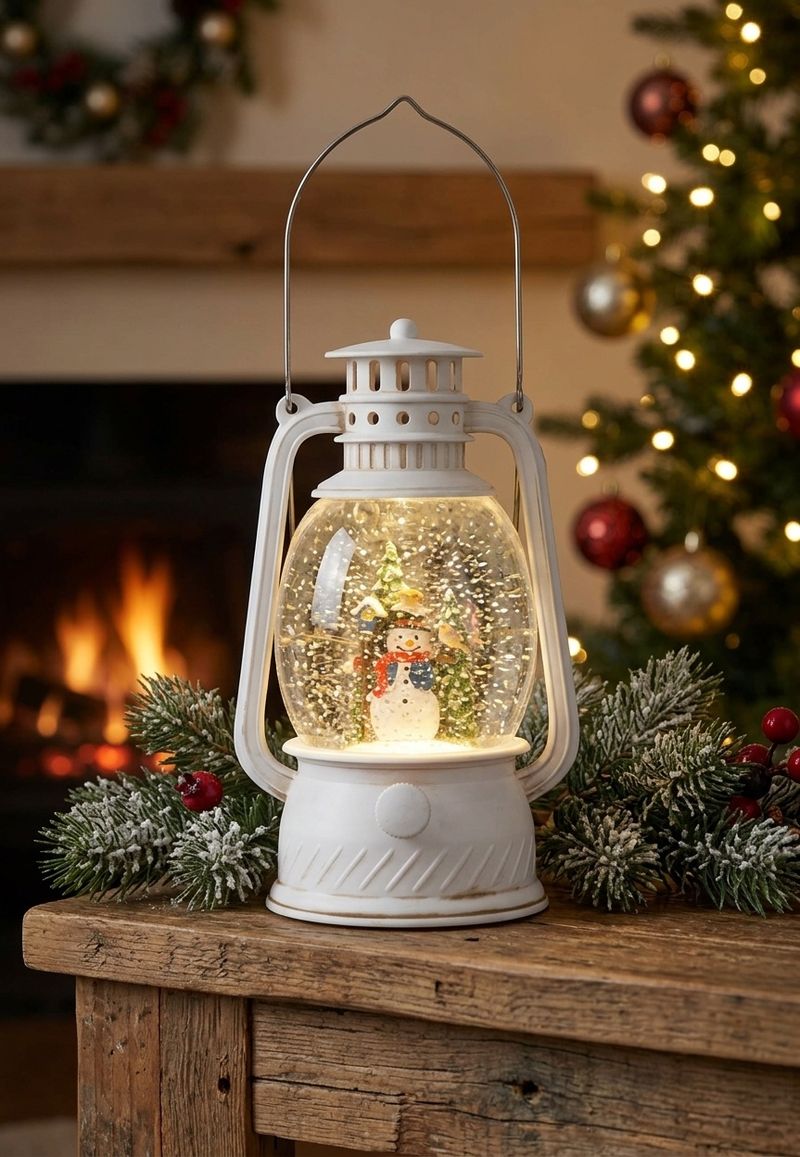 Felinar decorativ de Craciun cu LED alb cald, om de zapada, 20,5 cm
