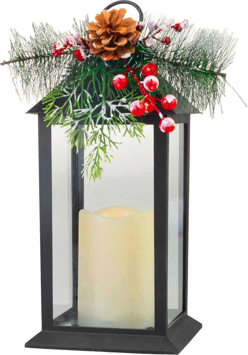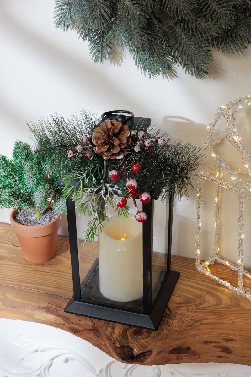 Adauga un plus de farmec decorului de sarbatoare cu acest felinar decorativ de Craciun MagicHome. Designul elegant, in nuanta neagra, este completat de o decoratiune festiva cu ramura de brad, fructe rosii si con de pin, pentru un aspect cald si autentic de iarna. Lumina LED galbena si efectul de flacara mobila creeaza o atmosfera cozy, perfecta pentru casa in perioada sarbatorilor.
