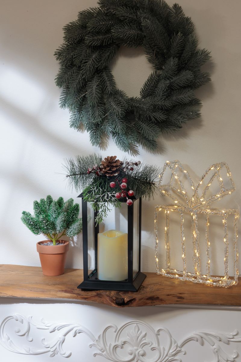 Acest felinar de Craciun cu LED este ideal pentru amplasare pe masa, raft, pervaz sau langa brad. Functioneaza fara fir, cu baterii, astfel incat il poti muta usor oriunde doresti. Functia de timer il face practic si usor de folosit in decorurile interioare de sezon.