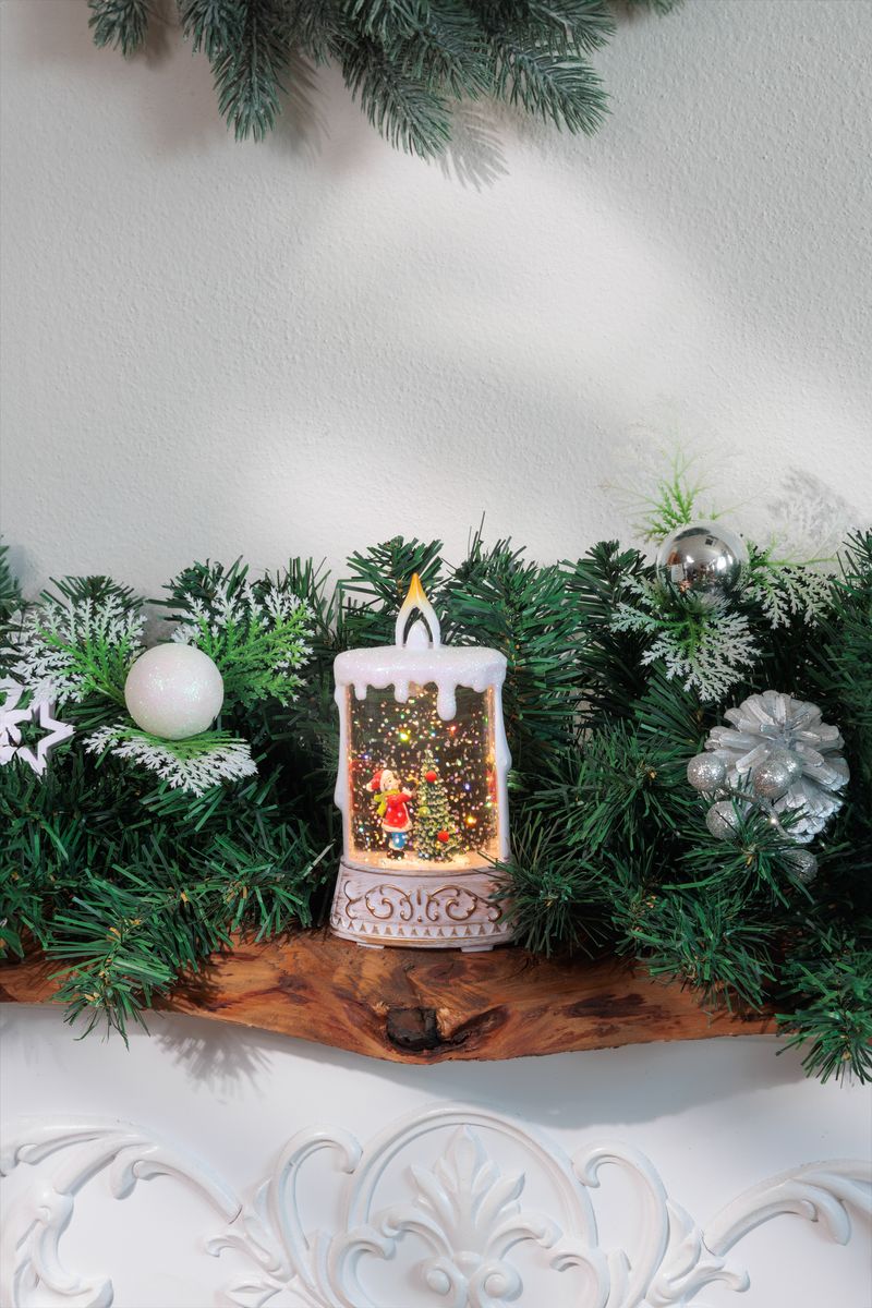 Compact și ușor de amplasat, acest decor luminos de Crăciun este ideal pentru a completa aranjamentele sezoniere de pe masă, raft, comodă sau pervaz. Designul cu efect de zăpadă îl transformă într-o piesă decorativă plină de farmec, potrivită pentru orice colț al casei.