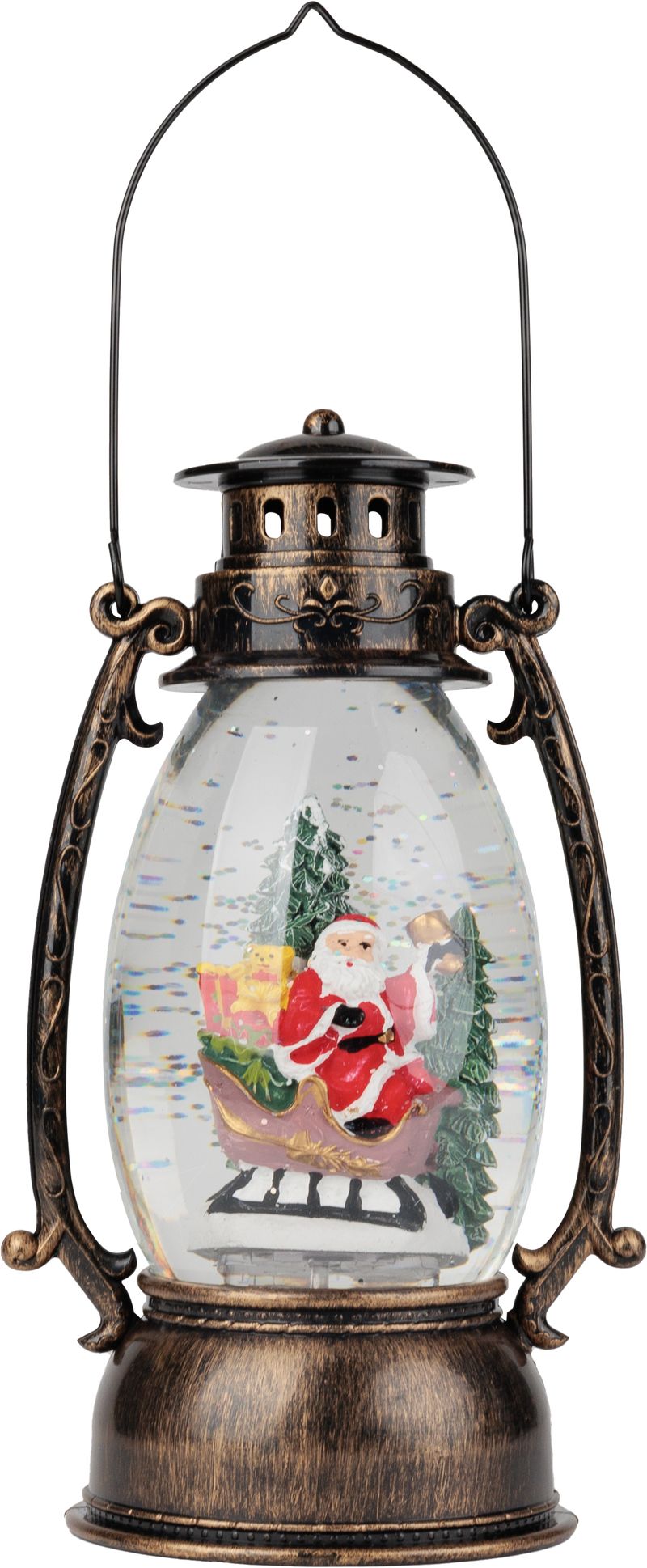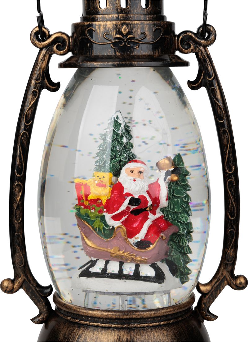 Felinar decorativ de Crăciun retro cu LED alb cald, Moș și sclipici