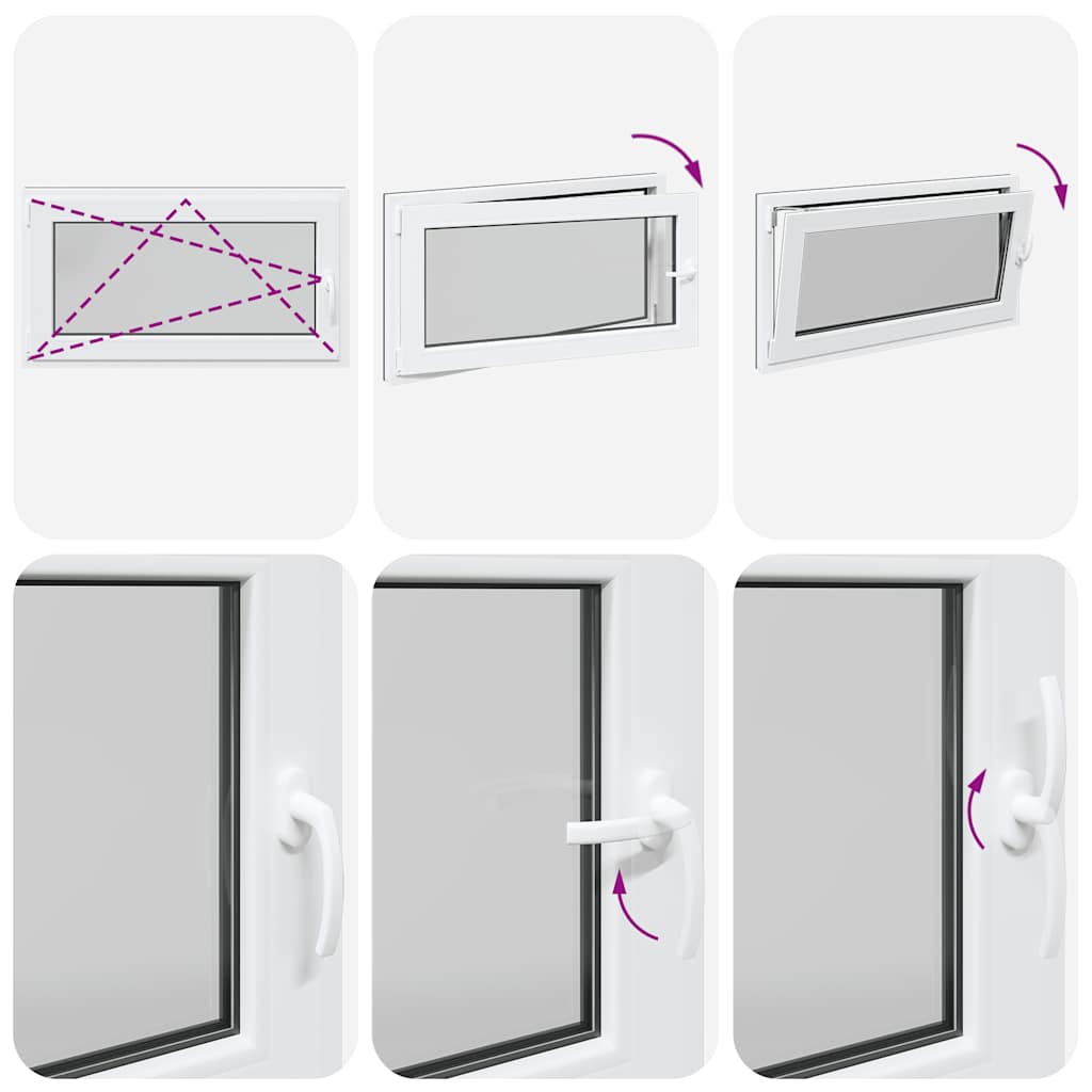 - Două moduri de ventilație: Fereastra de ieșire poate fi înclinată pentru ventilație, permițând un flux de aer sigur chiar și în zilele ploioase, împiedicând în același timp pătrunderea apei. De asemenea, poate fi rotit orizontal spre interior, fiind ideal pentru ventilație completă sau curățare ușoară.