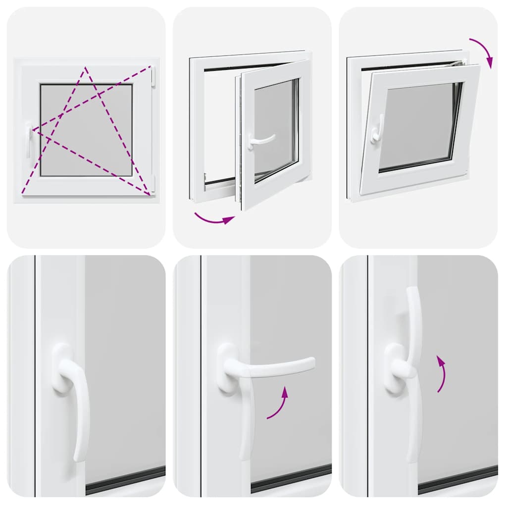 - Două moduri de ventilație: Fereastra de ieșire poate fi înclinată pentru ventilație, permițând un flux de aer sigur chiar și în zilele ploioase, împiedicând în același timp pătrunderea apei. De asemenea, poate fi rotit orizontal spre interior, fiind ideal pentru ventilație completă sau curățare ușoară.