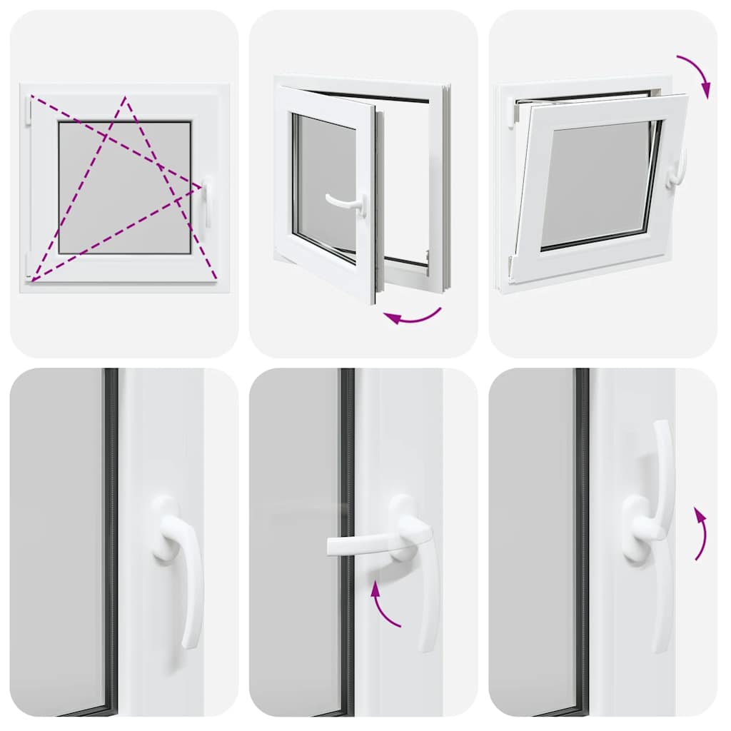 - Două moduri de ventilație: Fereastra de ieșire poate fi înclinată pentru ventilație, permițând un flux de aer sigur chiar și în zilele ploioase, împiedicând în același timp pătrunderea apei. De asemenea, poate fi rotit orizontal spre interior, fiind ideal pentru ventilație completă sau curățare ușoară.