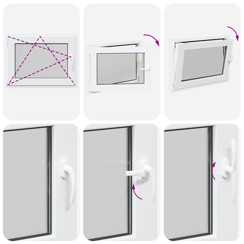 - Două moduri de ventilație: Fereastra de ieșire poate fi înclinată pentru ventilație, permițând un flux de aer sigur chiar și în zilele ploioase, împiedicând în același timp pătrunderea apei. De asemenea, poate fi rotit orizontal spre interior, fiind ideal pentru ventilație completă sau curățare ușoară.