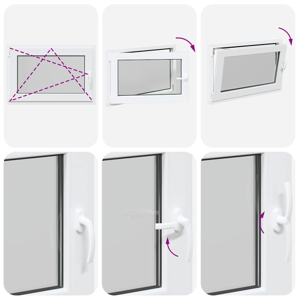 - Două moduri de ventilație: Fereastra de ieșire poate fi înclinată pentru ventilație, permițând un flux de aer sigur chiar și în zilele ploioase, împiedicând în același timp pătrunderea apei. De asemenea, poate fi rotit orizontal spre interior, fiind ideal pentru ventilație completă sau curățare ușoară.