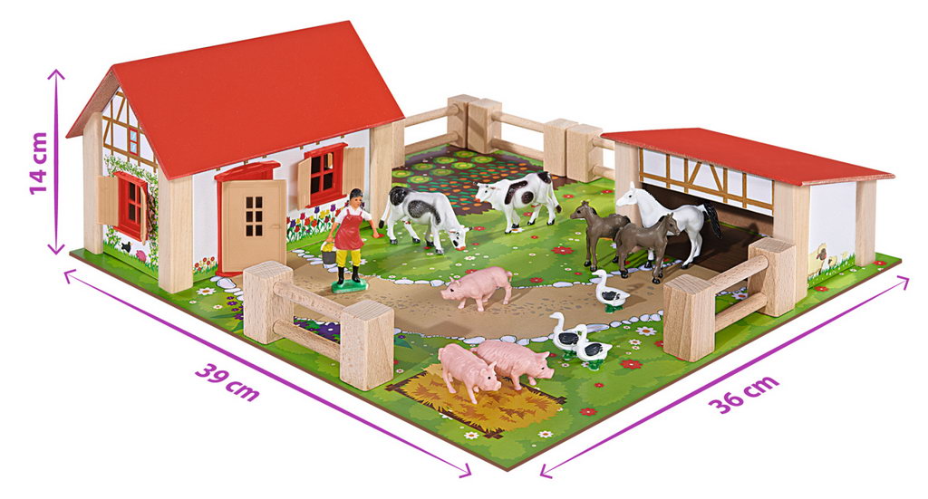 Ferma de jucarie din lemn 38x35 cm cu 21 accesorii pentru copii