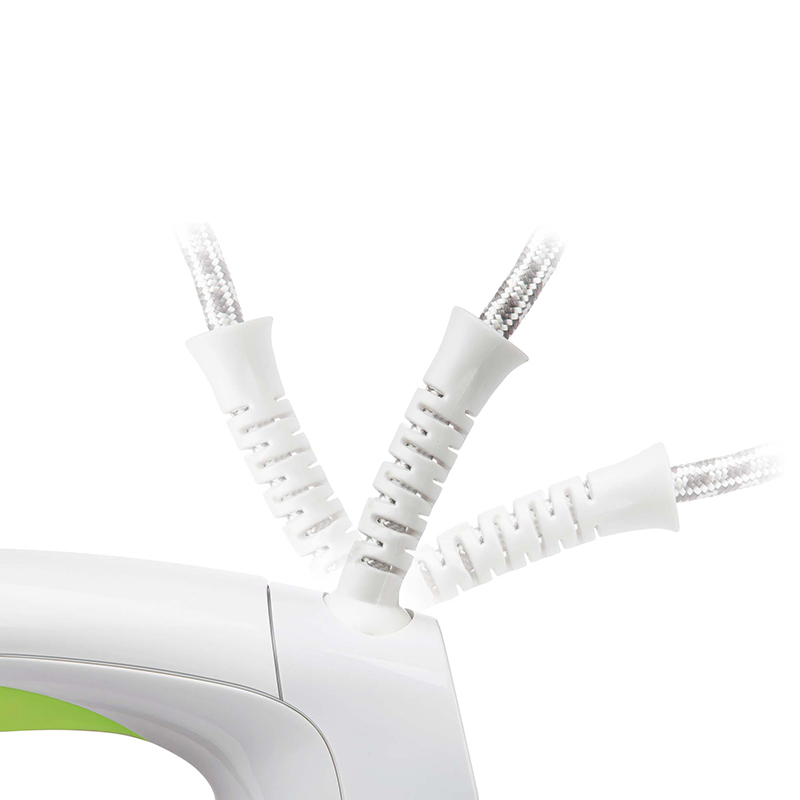 Putere de intrare 2200 W Suprafata de calcat ceramica Rezervor de apă transparent ușor de umplut (volum 380 ml) Control continuu al temperaturii Sistem de autocuratare pentru indepartarea depozitelor minerale Funcția Drip-Stop pentru prevenirea petelor de picături de apă pe țesături Opțiune de aburire verticală Reglarea continuă a aburului de ieșire Buton de stropire Termostat Capătul cablului de alimentare cu pivotare la 360° limitează răsucirea și încurcarea Recipient de umplere inclus Lungimea cablului de alimentare: 1,9 cm Dimensiuni (l x l x a): 295 x 115 x 140 mm Greutate: 1,1 kg