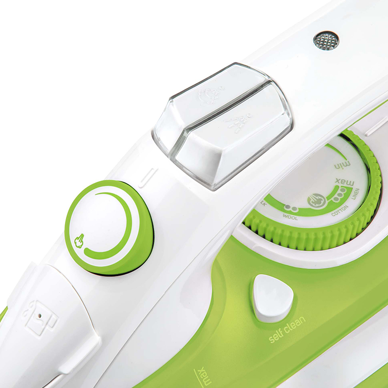 Putere de intrare 2200 W Suprafata de calcat ceramica Rezervor de apă transparent ușor de umplut (volum 380 ml) Control continuu al temperaturii Sistem de autocuratare pentru indepartarea depozitelor minerale Funcția Drip-Stop pentru prevenirea petelor de picături de apă pe țesături Opțiune de aburire verticală Reglarea continuă a aburului de ieșire Buton de stropire Termostat Capătul cablului de alimentare cu pivotare la 360° limitează răsucirea și încurcarea Recipient de umplere inclus Lungimea cablului de alimentare: 1,9 cm Dimensiuni (l x l x a): 295 x 115 x 140 mm Greutate: 1,1 kg