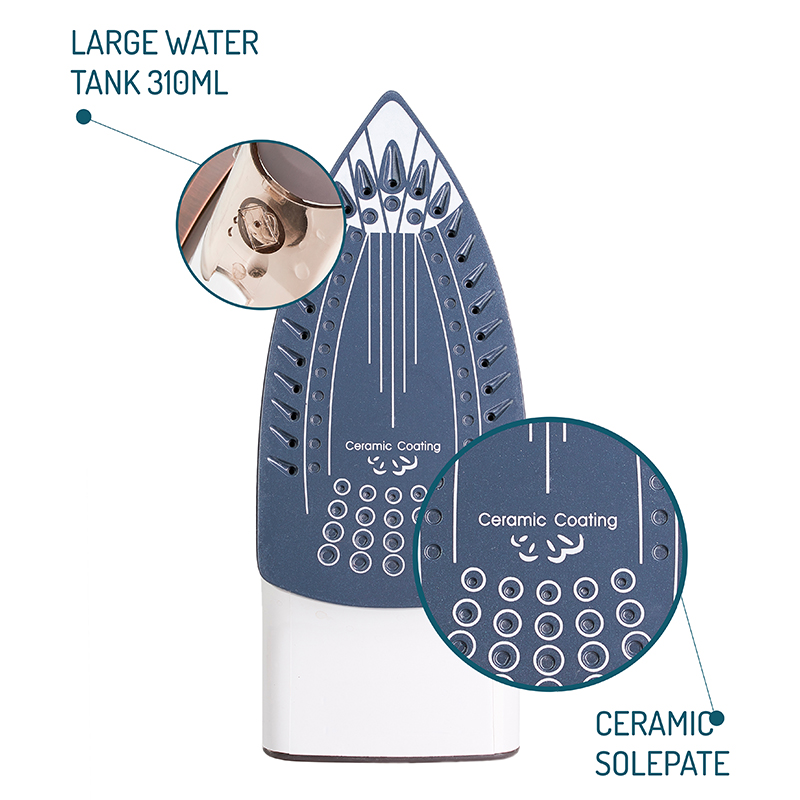 Iti place calcatul si cauti echipamente profesionale care sa ajute si la durabilitatea tesaturilor calcate? Acest model de talpa din ceramica este echipat cu functii de auto-curatare, anti-calc si anti-picurare. Functia de pulverizare este, de asemenea, disponibila. Rezervor mare de apa de 310 ml si abur continuu pana la 20g / min.