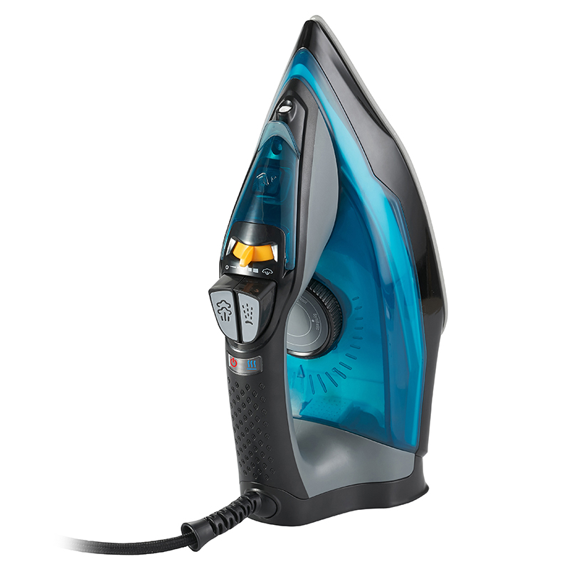 AD5032 este un fier de călcat cu abur multifuncțional cu multe avantaje. Fierul de călcat are 5 funcții: călcare cu abur pe orizontală, generarea a 45 de grame de abur pe minut, călcare cu abur pe orizontală cu funcția de jet cu abur până la 80 de grame pe minut pentru a netezi cutele profunde, călcare uscată (fără a folosi abur), călcat pe verticală (de ex. perdele, haine atârnate pe umerase: jachete), îndeplinește funcția de pulverizator. Fierul de călcat este echipat cu 4 sisteme: oprire automată în cazul lăsarii aparatului nesupravegheat, sistem anti-picurare când temperatura tălpii nu a atins încă temperatura optimă, aparatul va opri curgerea picăturilor de apă în loc de abur. , sistem Anti-Calc de limitare a depunerilor de minerale din apa din aparat, sistem de autocuratare. Avantajele suplimentare includ un rezervor mare care permite reumplerea mai puțin frecventă cu apă în timpul călcării. Vârful ascuțit al tălpii facilitează accesul în locuri greu accesibile, cum ar fi în jurul nasturilor, pliurilor, etc. Talpa ceramică mărește alunecarea. Cablu de alimentare 1,50 m. Funcția de oprire automată întrerupe alimentarea cu energie a fierului de călcat după ce l-ați lăsat în poziție verticală după 8 minute, în poziție orizontală după 30 de secunde. Aparatul semnalează activarea funcției de oprire automată cu 6 semnale sonore.