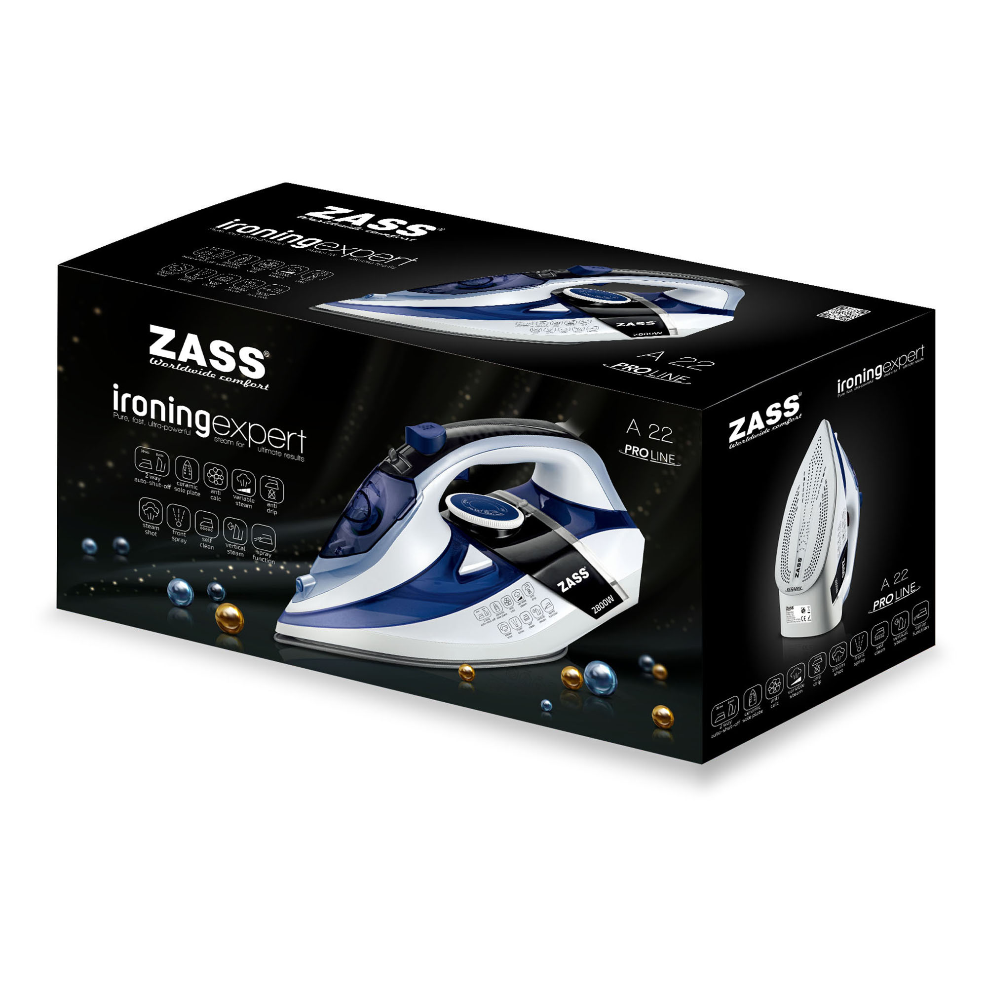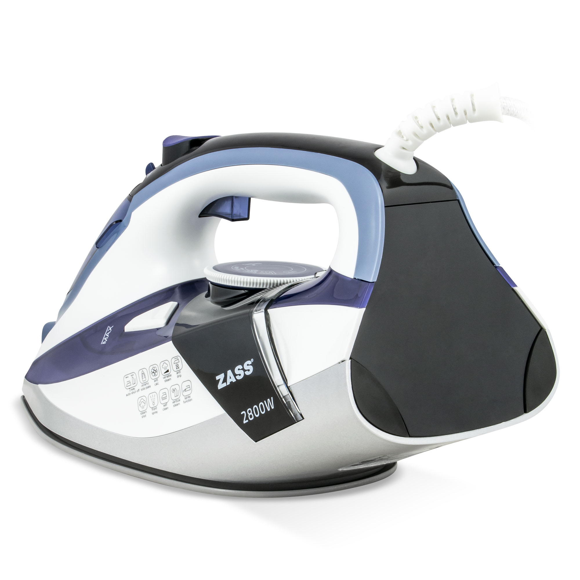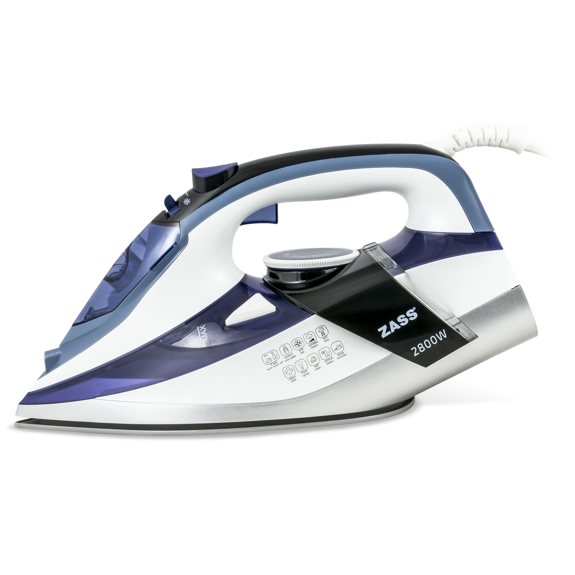 Fier de calcat cu abur Zass A22, 2800 W, talpa ceramica si oprire automata