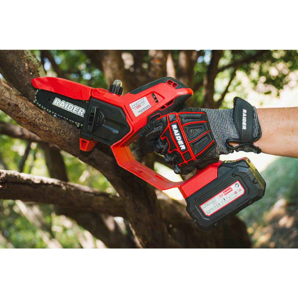 Fierăstrăul cu lanț Raider R20 150 mm este alegerea potrivită pentru lucrări rapide de întreținere în curte, grădină sau atelier. Datorită formatului compact, manevrării ușoare și lamei de 150 mm, acest fierăstrău cu lanț cu acumulator este ideal pentru tăieri precise ale crengilor, lemnului subțire și altor materiale lemnoase. Varianta Solo se livrează fără baterie și încărcător, fiind practică pentru utilizatorii care dețin deja scule compatibile din gama Raider R20.