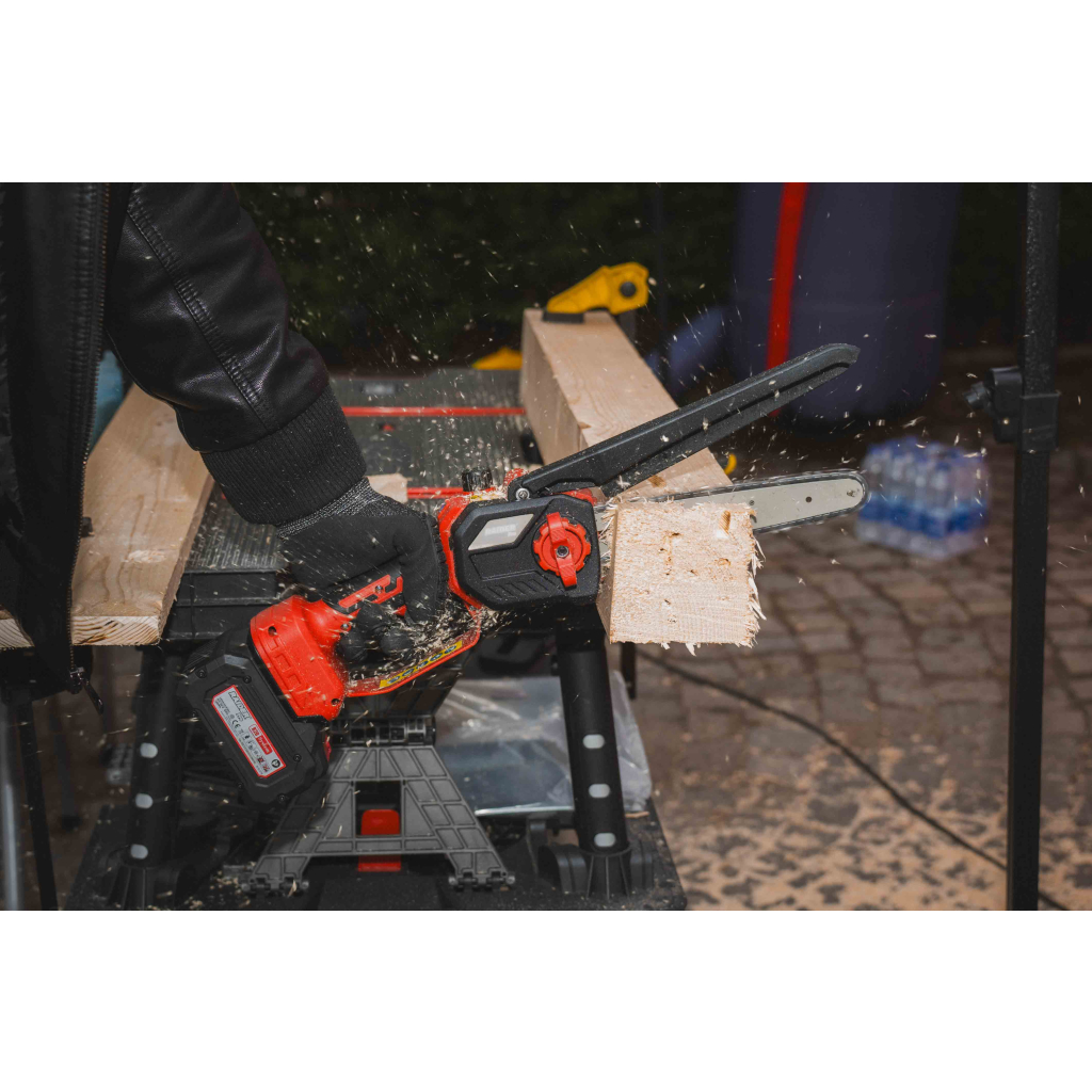 Acest fierăstrău electric cu lanț este potrivit pentru utilizatorii care caută un echipament eficient pentru lucrări ușoare și medii. Lama de 20 cm îl recomandă pentru intervenții rapide, iar sistemul de lanț SDS 3/8 .050 contribuie la o tăiere sigură și precisă. Varianta Solo se livrează fără acumulator, fiind ideală dacă deții deja unelte compatibile din aceeași platformă.