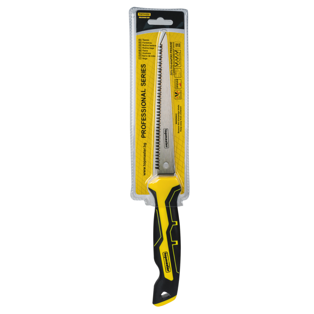 Acest fierăstrău pentru gips-carton Topmaster este alegerea potrivită pentru lucrări de decupare și tăiere rapidă în plăci de rigips. Construcția cu lamă dublă și dinți căliți, ascuțiți pe trei fețe, oferă o pătrundere eficientă în material și un control mai bun în timpul utilizării. Mânerul ergonomic contribuie la o prindere confortabilă, fiind util atât pentru profesioniști, cât și pentru utilizatori casnici.