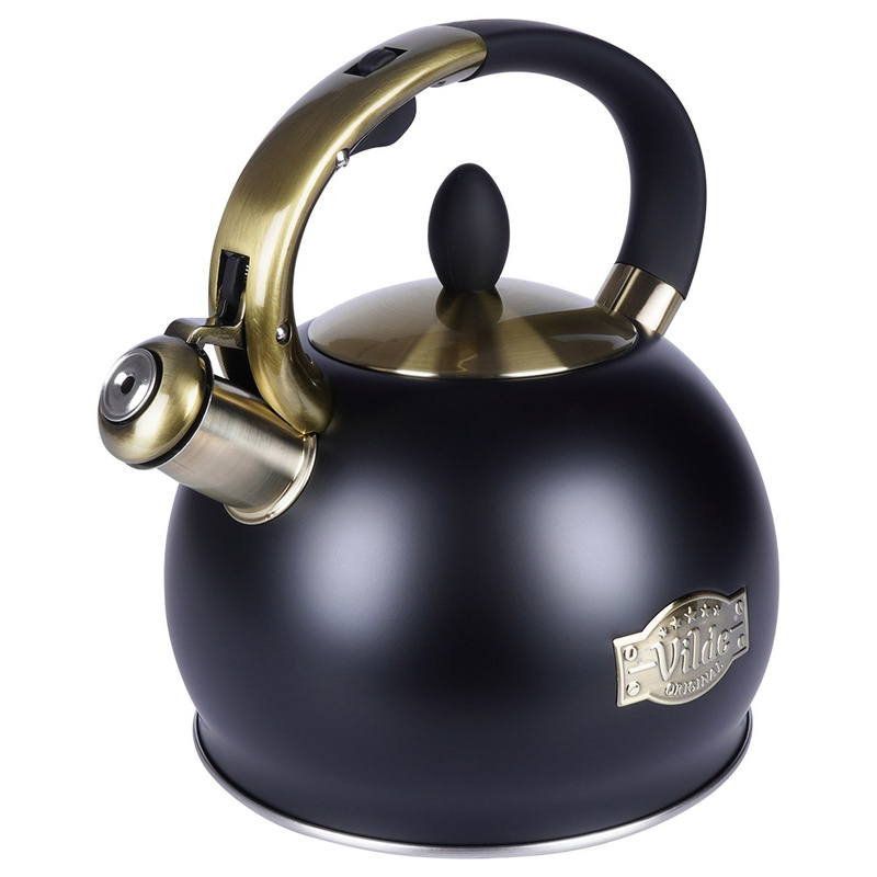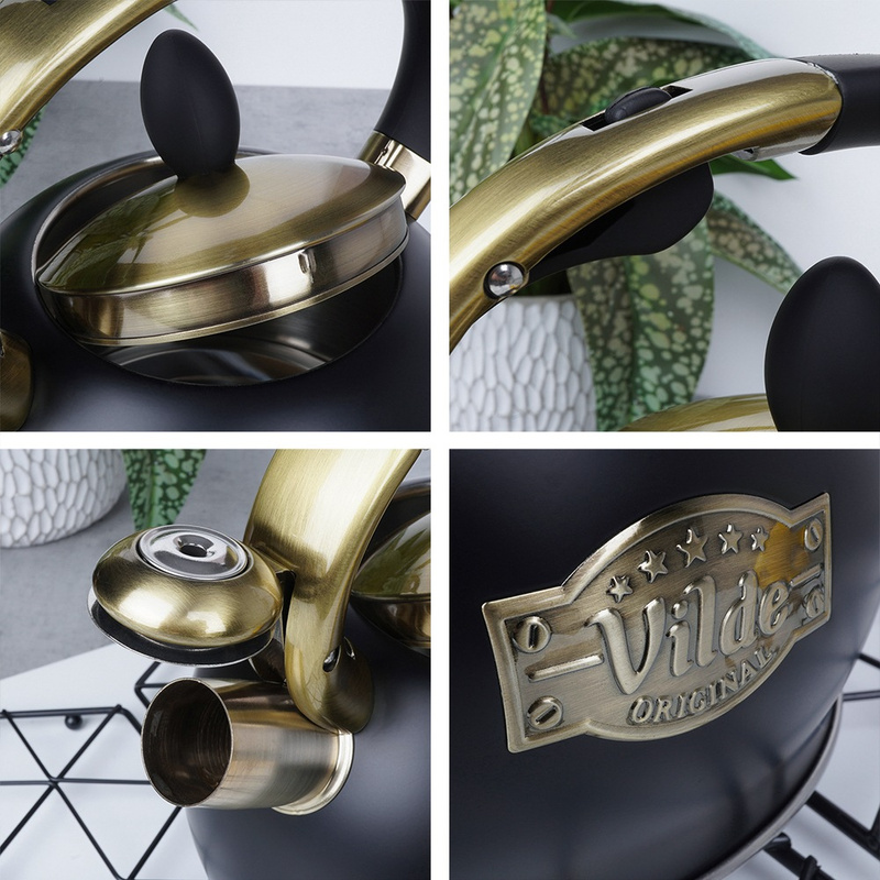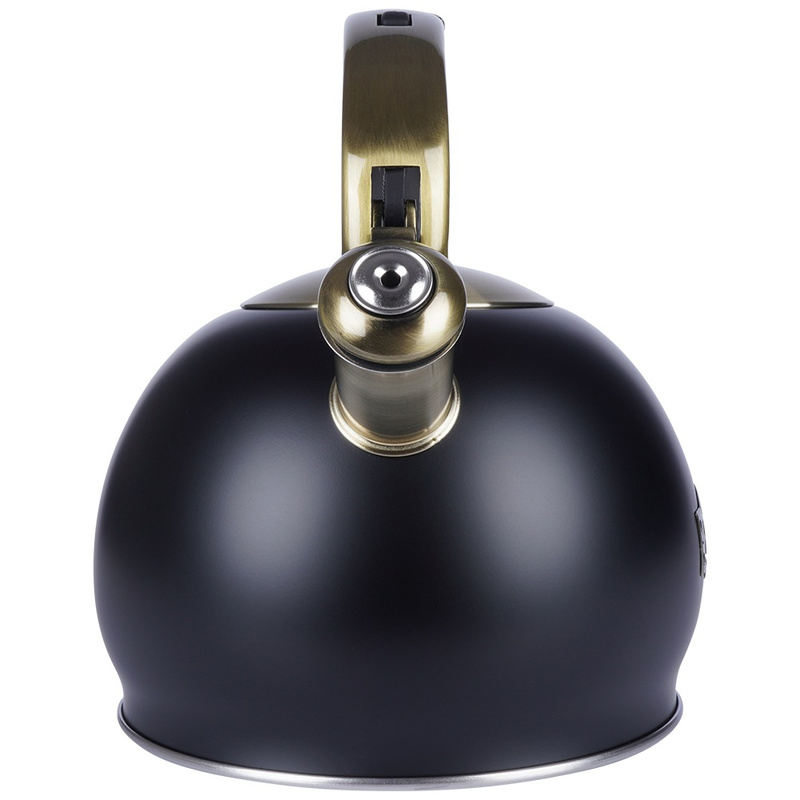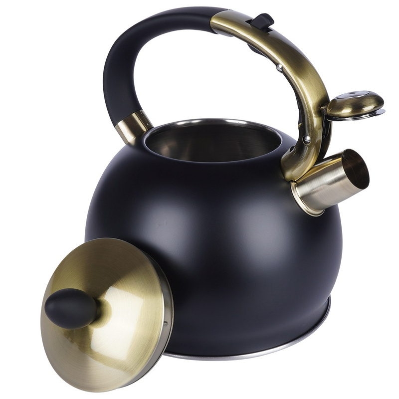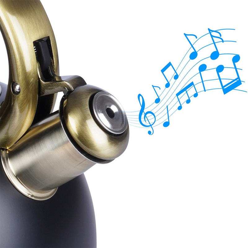 Fierbător cu fluier din oțel inoxidabil 3 L, negru mat cu detalii aurii