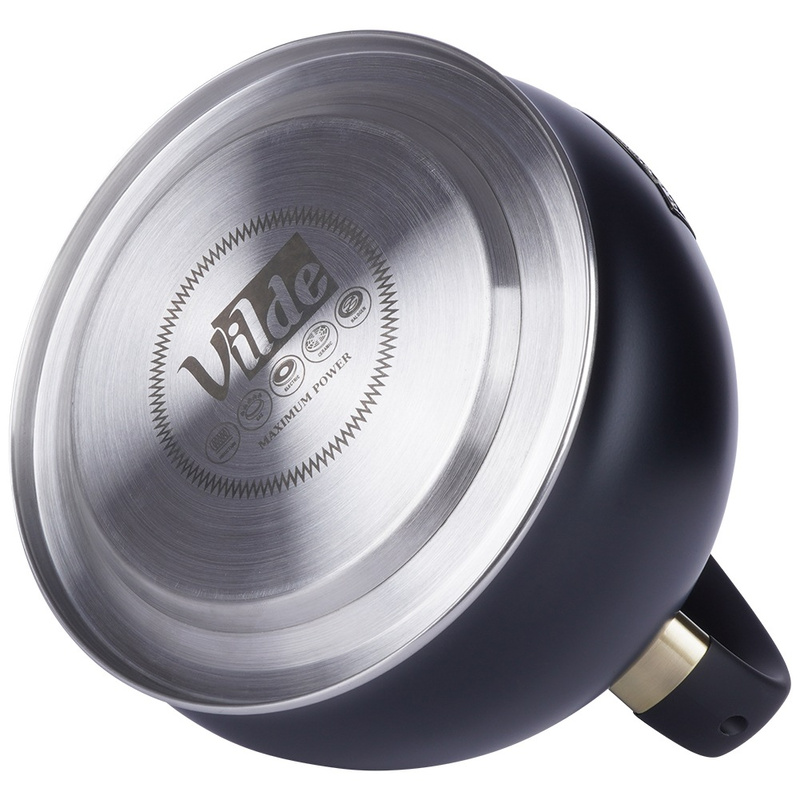 Adaugă un plus de stil și eficiență în bucătărie cu acest fierbător cu fluier Vilde, realizat din oțel inoxidabil și finisat în negru mat cu detalii aurii. Încălzește rapid apa pentru ceai, cafea sau gătit, iar fluierul te anunță imediat când a ajuns la punctul de fierbere.
