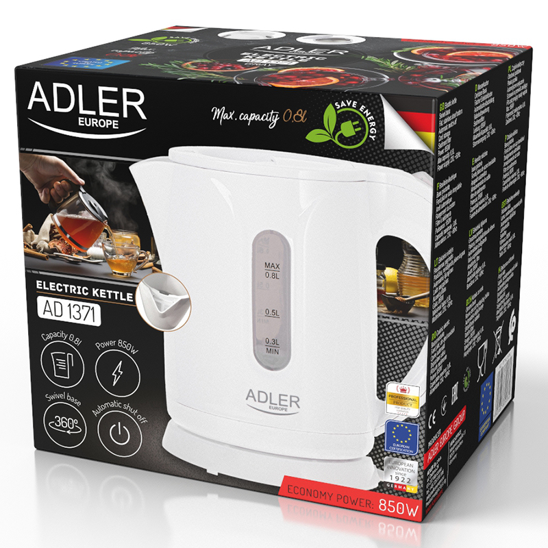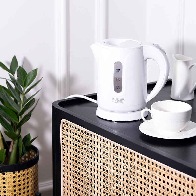 Cu fierbatorul electric Adler 0,8L pregatesti rapid apa pentru ceai, cafea sau supe instant, acasa, la birou ori in camera de camin. Este gandit pentru utilizare zilnica, cu oprire automata si protectie impotriva functionarii fara apa, pentru un plus de siguranta.