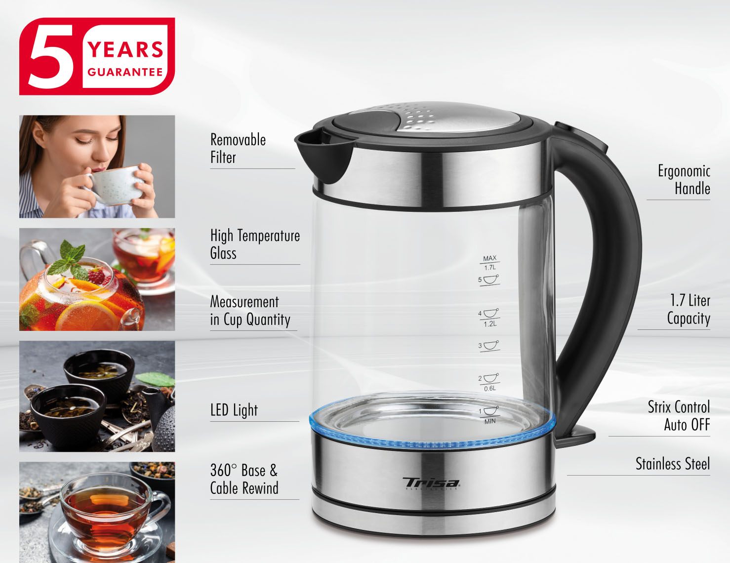 Daca iti doresti un fierbator electric 1.7L eficient, sigur si usor de integrat in orice bucatarie, acest model Trisa este o alegere inspirata.
