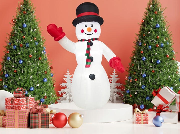 Transforma rapid casa, curtea sau terasa intr-un decor festiv de poveste cu aceasta figurina de Craciun gonflabila in forma de om de zapada. Cu o inaltime impresionanta de 240 cm, iluminare cu LED alb rece si sistem de umflare automata, decoratiunea atrage imediat privirile si creeaza o atmosfera vesela, perfecta pentru sarbatori.