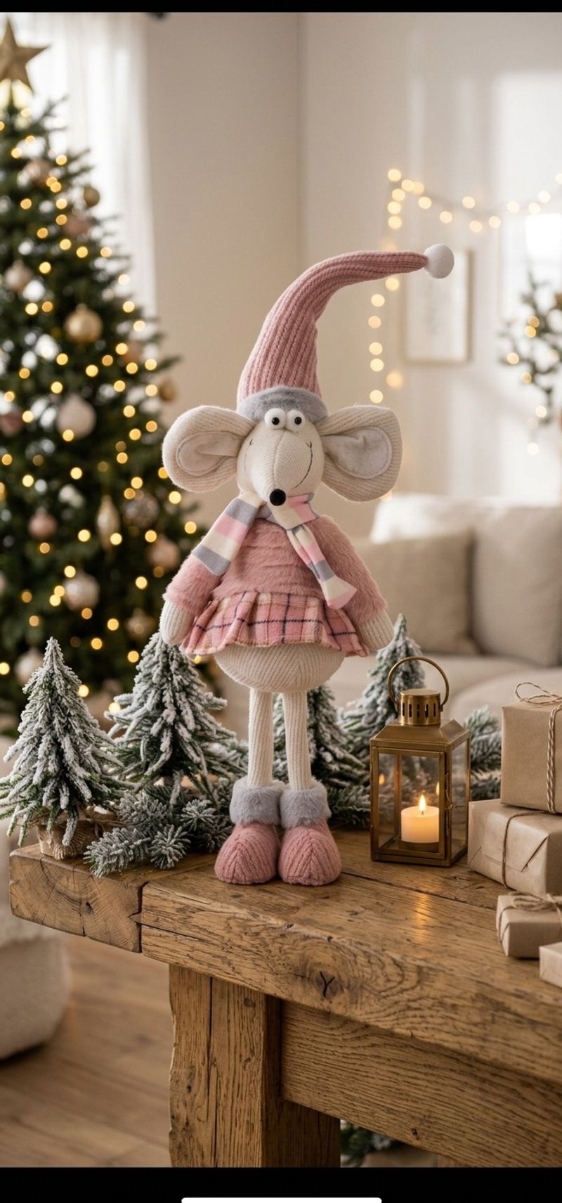 Datorită înălțimii de 59 cm, această decorațiune textilă de Crăciun se remarcă ușor în living, hol, dormitor sau în decorurile de sezon de pe rafturi și comode. Nuanța roz și aspectul prietenos o fac potrivită atât pentru decoruri clasice, cât și pentru cele moderne sau jucăușe.