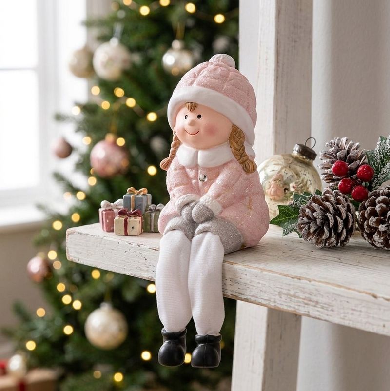 Adauga un plus de farmec decorului festiv cu aceasta figurina decorativa de Craciun in forma de fetita, realizata din polyresin. Cu un design delicat si prietenos, in nuante suave, aceasta piesa este potrivita pentru a infrumuseta livingul, holul, pervazul sau coltul dedicat sarbatorilor de iarna.