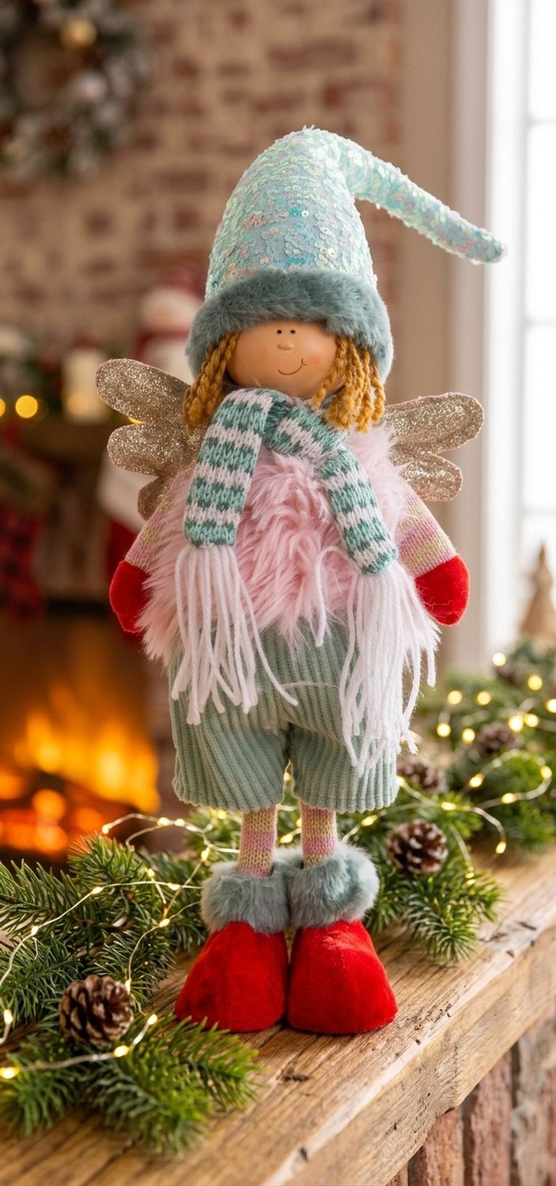 Adu un plus de farmec sărbătorilor cu această figurină decorativă de Crăciun în formă de înger băiat, potrivită pentru a înfrumuseța casa în sezonul festiv. Designul său vesel, în nuanțe roz-verde, cu aripi sclipitoare și pantofi roșii, transformă orice colț într-un decor cald și primitor.