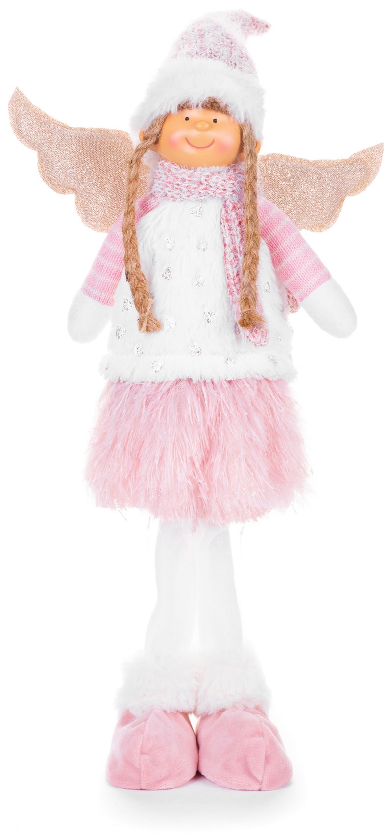 Figurină decorativă înger de Crăciun roz-alb din textil, 59 cm