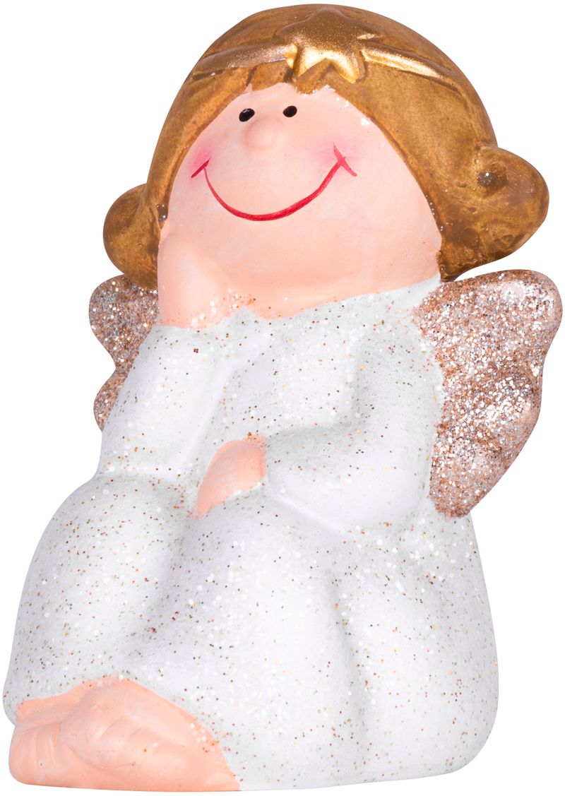 Figurina decorativa inger sezand pentru Craciun, alb-auriu, 11 cm