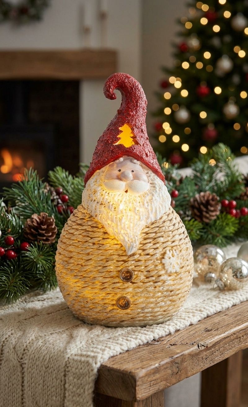 Adaugă mai multă căldură decorului de sărbători cu această figurină decorativă Moș Crăciun cu LED, ideală pentru a crea o atmosferă festivă în orice colț al casei. Realizată din polyresin și evidențiată de un design rotunjit, simpatic, această decorațiune de Crăciun pentru interior oferă o lumină albă plăcută și un aspect elegant, perfect pentru sezonul festiv.