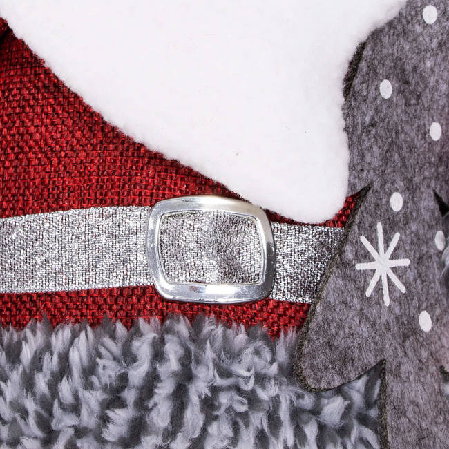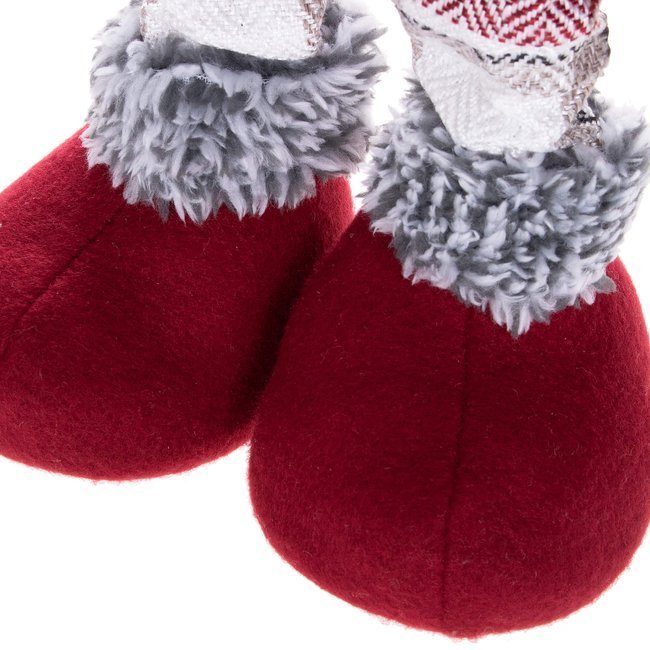 Realizata din pasla si material cu aspect similar velurului, figurina ofera un aspect placut si un finisaj decorativ deosebit. Stabilitatea este imbunatatita prin constructia pantofilor, iar designul prietenos o face usor de integrat langa brad, pe hol, in living sau in spatii comerciale.