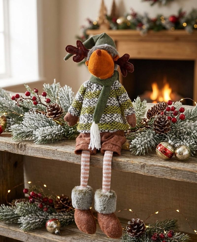 Aceasta decoratiune de Craciun textila poate fi asezata pe raft, comoda, pervaz sau in zona bradului, completand armonios decorul de iarna. Dimensiunea sa generoasa o face usor de remarcat, iar stilul simpatic este potrivit atat pentru interioare clasice, cat si moderne.