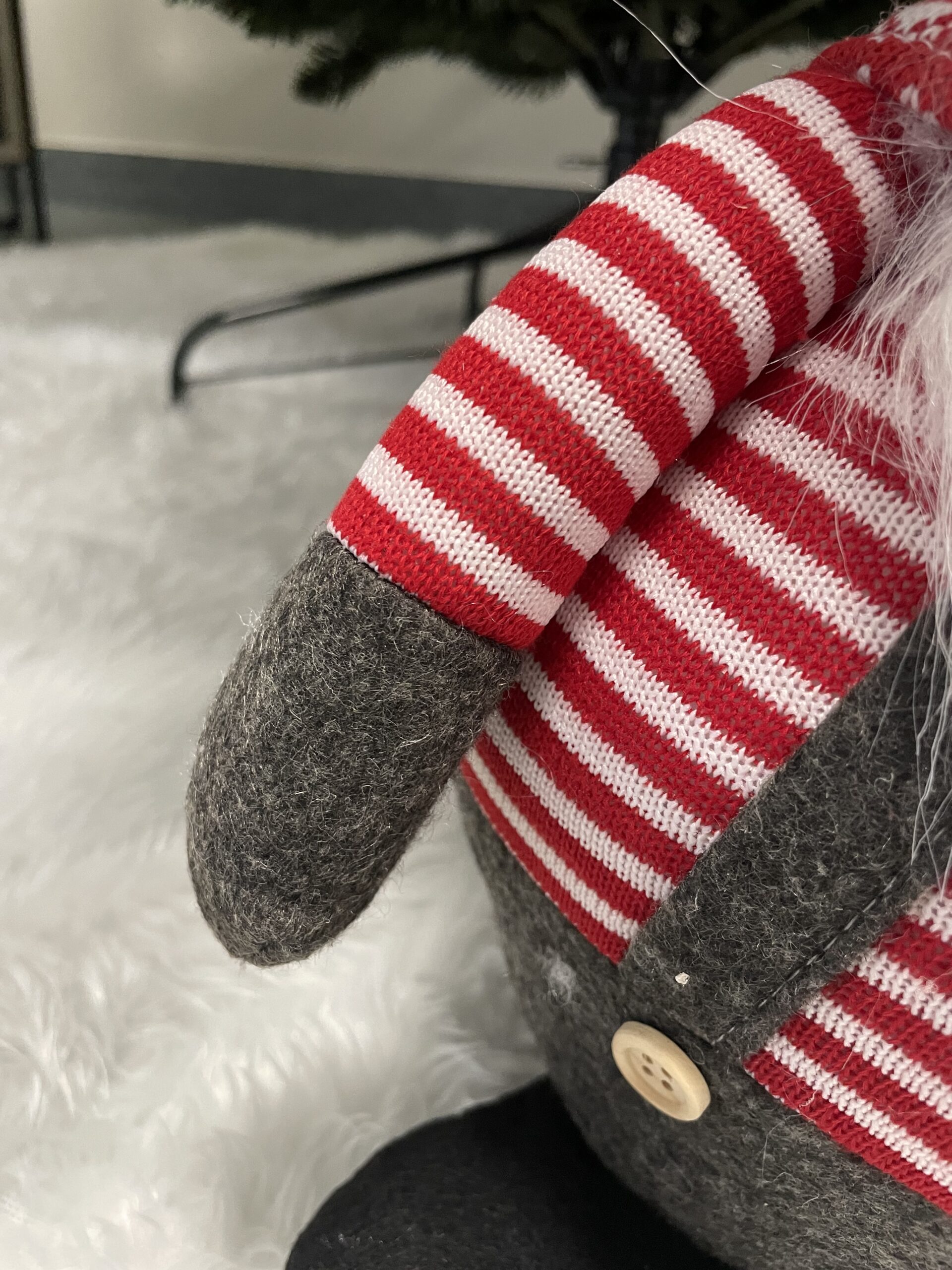 Figurina spiridus de Craciun din textil, cu bluza in dungi, 80 cm