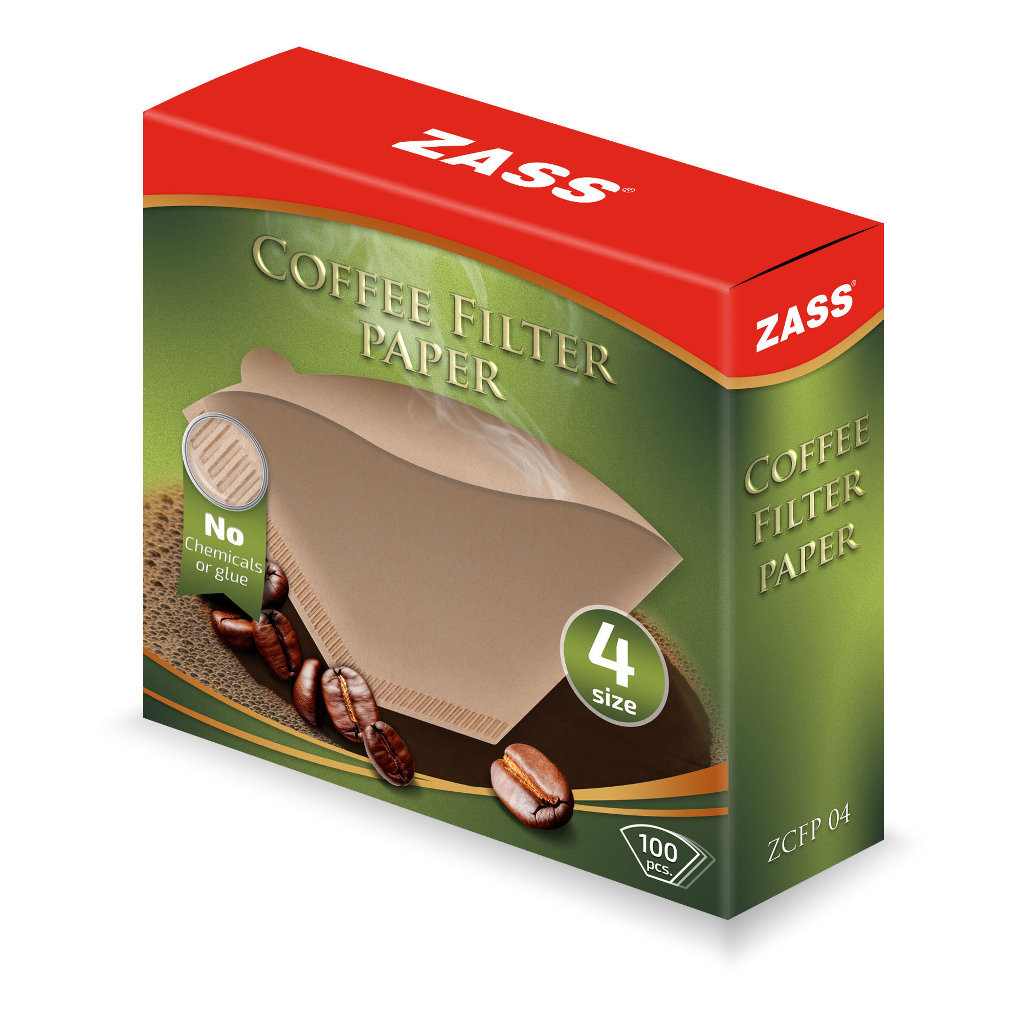 Filtre din hârtie biodegradabile pentru cafetieră nr. 4, 100 buc, Zass