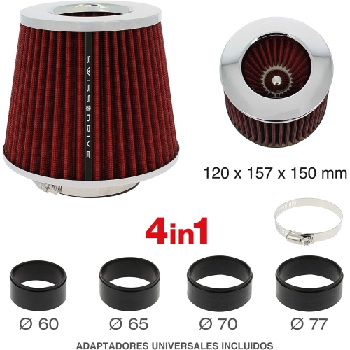 Filtru aer universal rosu 120x157x150 mm cu 4 adaptori 60/65/70/75 mm