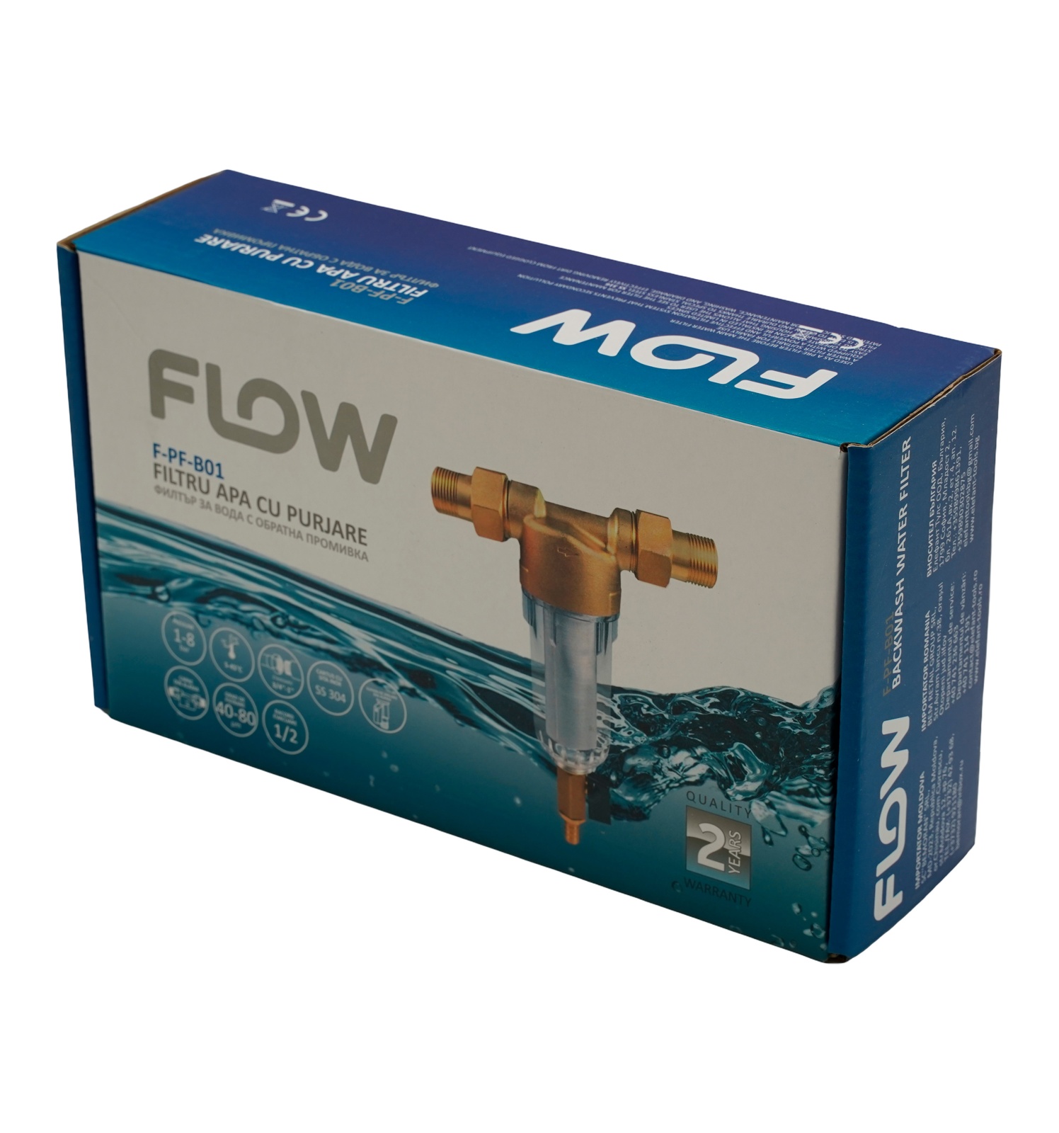 Alege un filtru apă cu purjare eficient pentru protejarea instalațiilor sanitare, bateriilor, robineților și altor echipamente împotriva impurităților din apă. Modelul FLOW F-PF-B01 are corp rezistent din alamă, cartuș cu sită inox și sistem practic de purjare, pentru curățare rapidă fără demontarea filtrului.