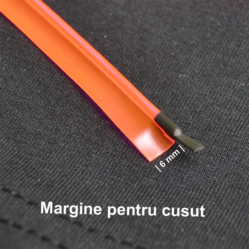 Acesta este ideal pentru personalizarea imbracamintei. Acesta are o margine cu latimea de 6 mm cu ajutorul careia se poate prinde pe textile prin coasere sau lipire.