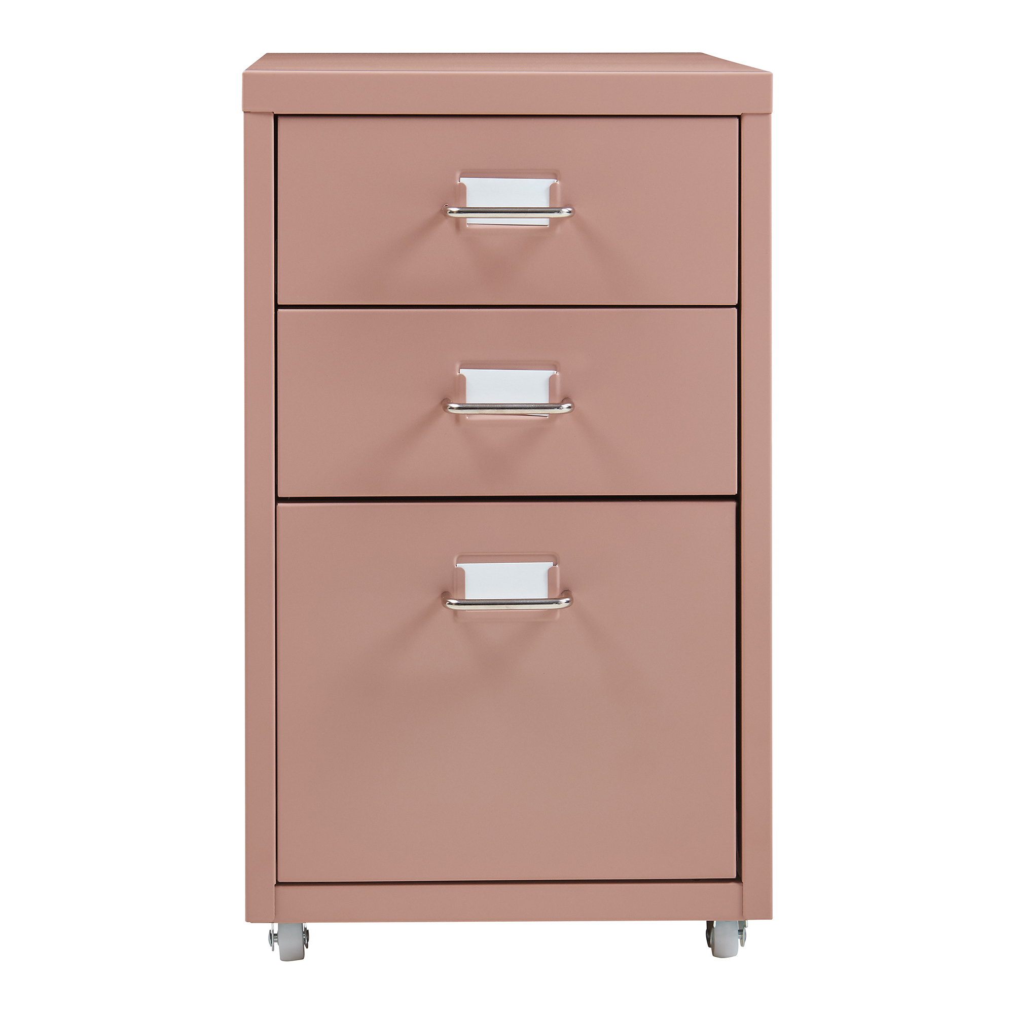Fișet metalic mobil cu 3 sertare pentru birou, maro deschis, 48x28x41 cm