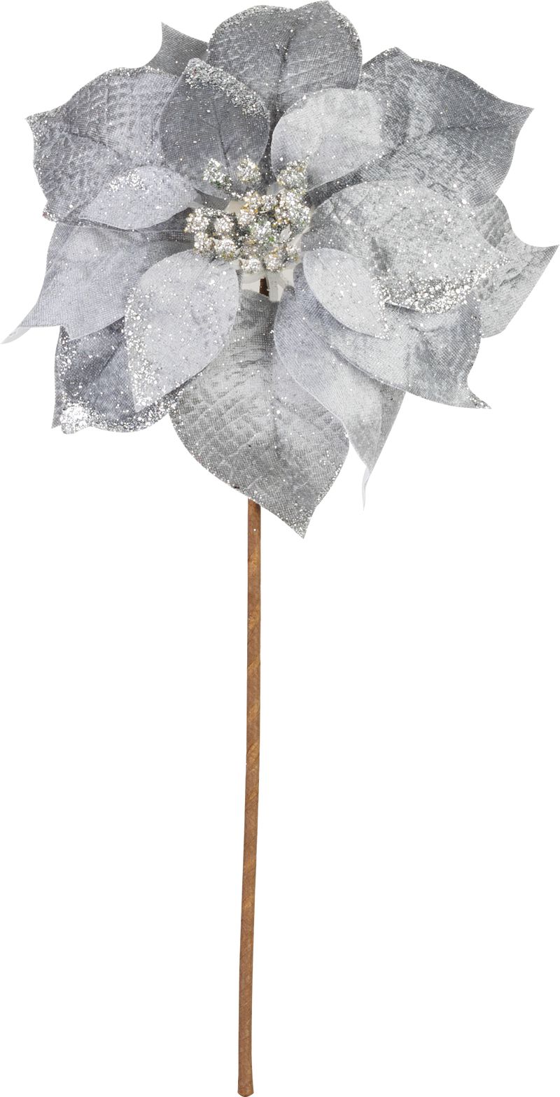 Floare decorativă de Crăciun Poinsettia argintie cu tulpină 38 cm