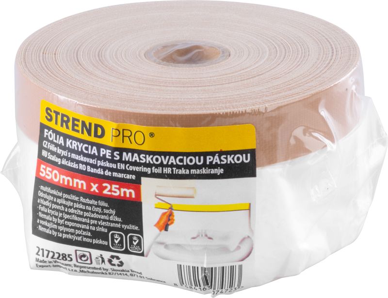 Fólia krycia Strend Pro, 550 mm, L-25 m, PE, s látkovou lepiacou páskou, zakrývacia, na podlahu