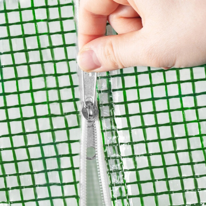 Datorita protectiei UV4, folia contribuie la o utilizare indelungata in exterior, iar cele 9 ferestre cu plasa anti-insecte ajuta la ventilarea eficienta a serei. Usa frontala tip roleta, cu fermoar si prindere velcro, permite acces facil si o inchidere comoda.