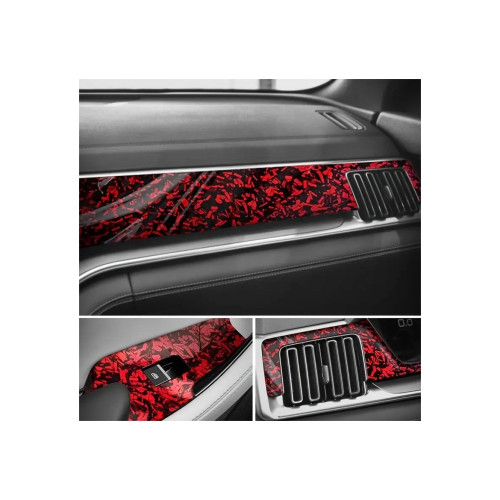 Folie auto autocolant Pet Premium carbon forjat rosu 1.52m x 1m cu tehnologie eliminare bule Cod: PET10159 Automotive TrustedCars