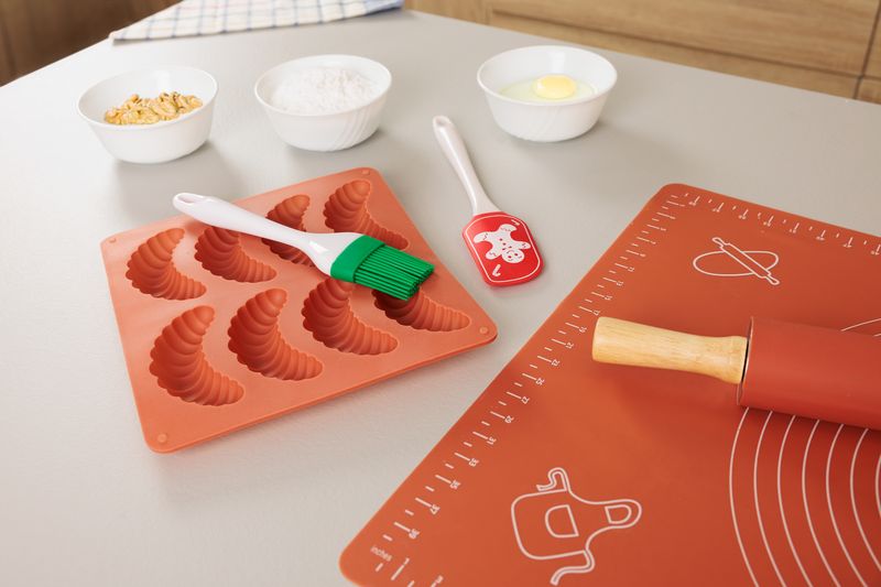 S touto praktickousilikónovou formouna pečenie vanilkových rožtekov môžete pohodlne pripraviť až8 rožtekovnaraz. Forma s rozmermi24,6x22,3 cma výškou2 cmje všestranná a vhodná pre rôzne typy rúr – mikrovlnné, elektrické, teplovzdušné aj plynové.