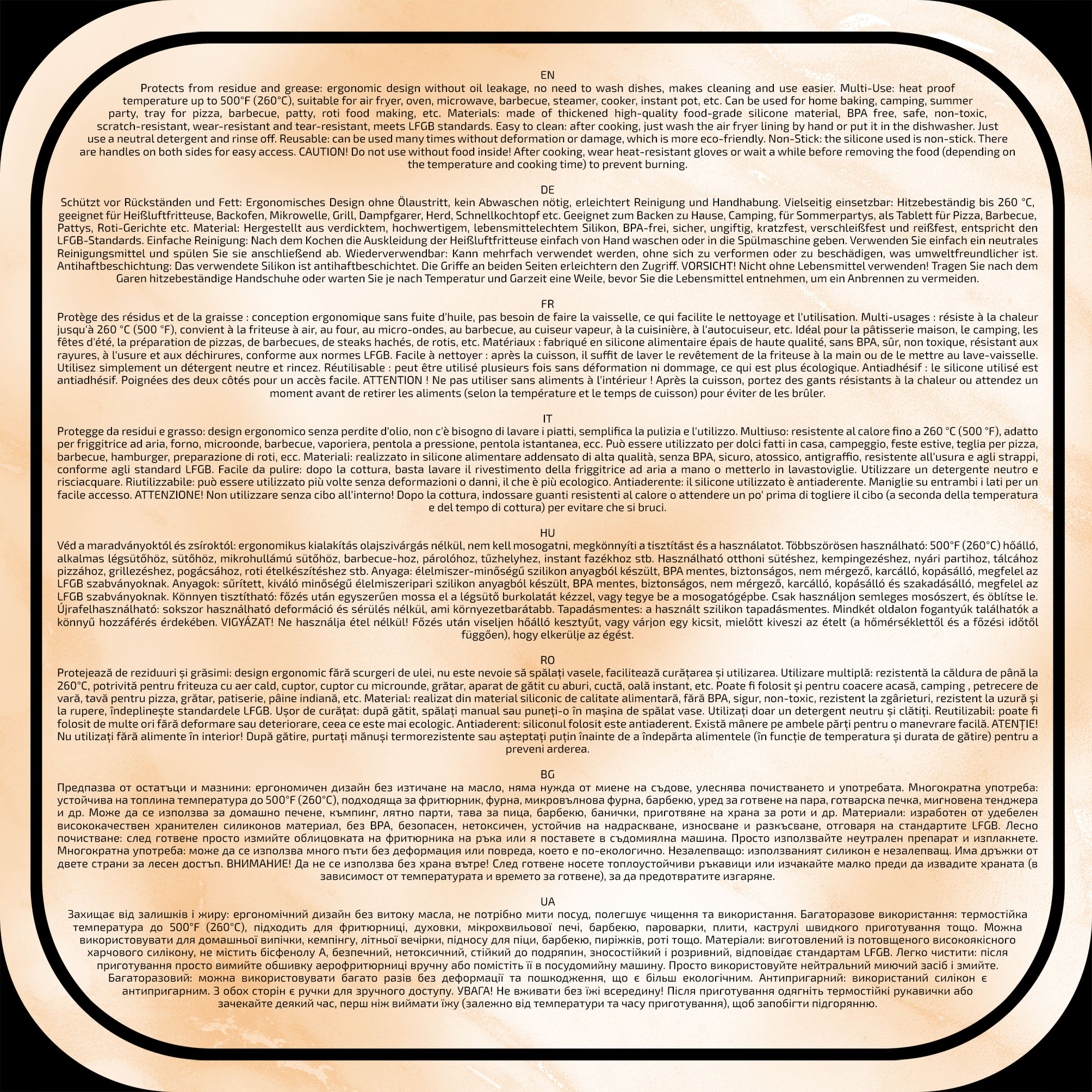 - Tip produs: forma patrata pentru friteuza cu aer