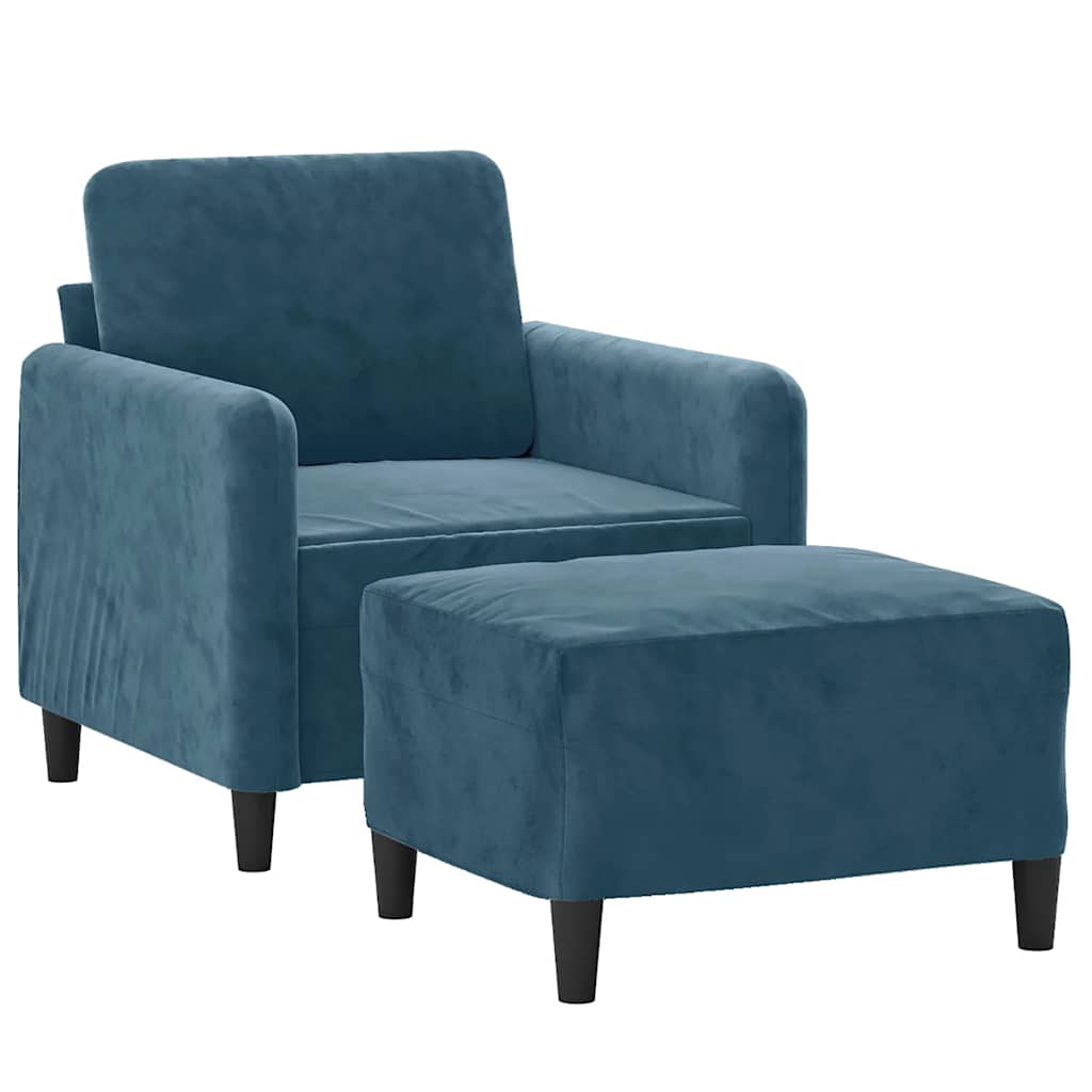 Fotoliu canapea cu taburet, albastru, 60 cm, catifea GartenMobel Dekor