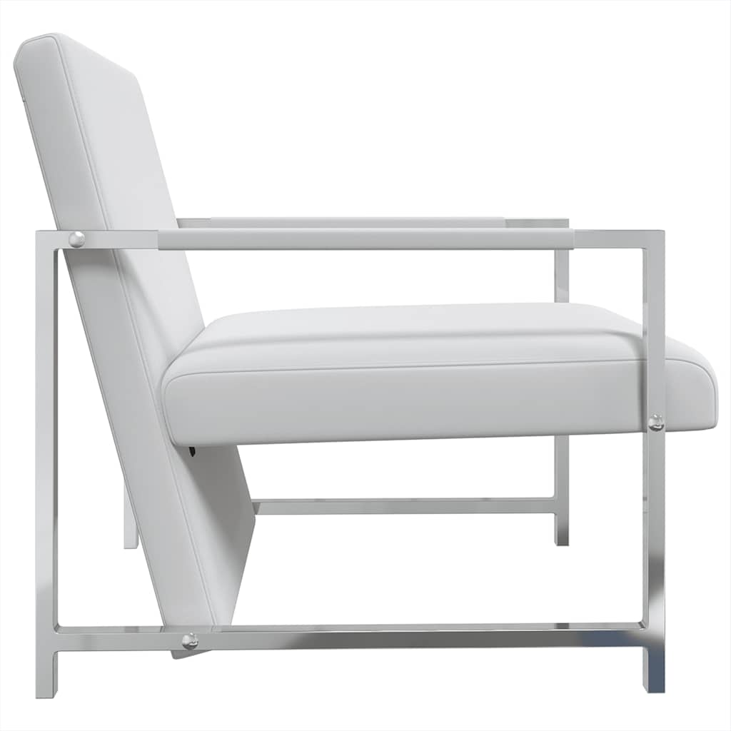 Fotoliu cu picioare cromate, alb, piele ecologică GartenMobel Dekor