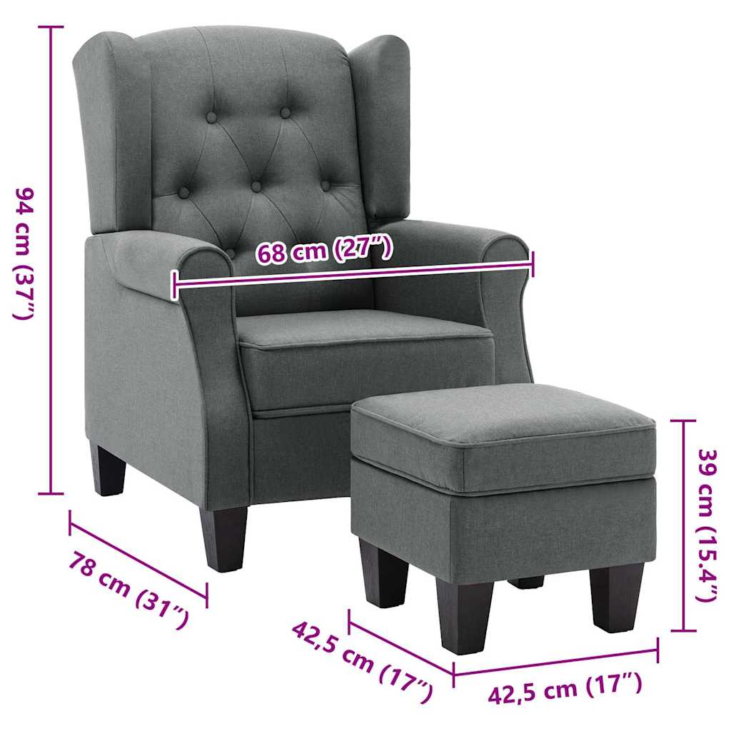 Fotoliu cu taburet pentru picioare, gri deschis material textil GartenMobel Dekor